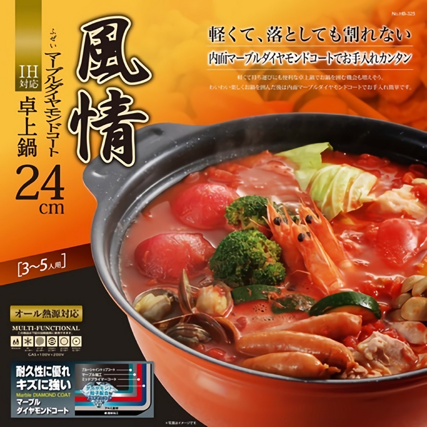 Parukinzoku taste Marble diamond-coated IH corresponding glass lid with a tabletop pot 24cm HB-325