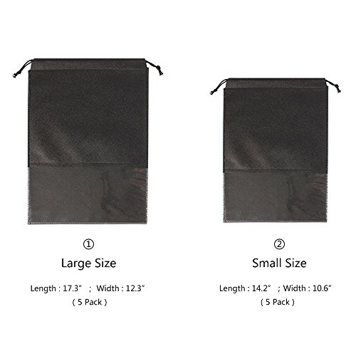 UXUAN 10 Pcs Black Shoe Bags with drawstring for Travel (5 Large + 5 Small)