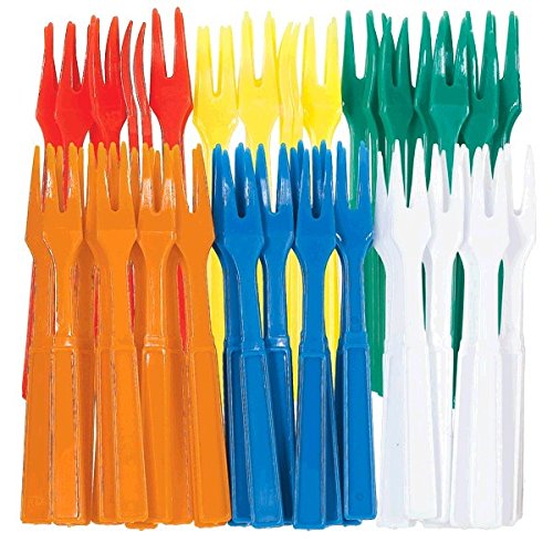 Party Fun Bright Hues Hors D'oeuvres Forks , Assorted Colors, Plastic , 3", Pack of 30