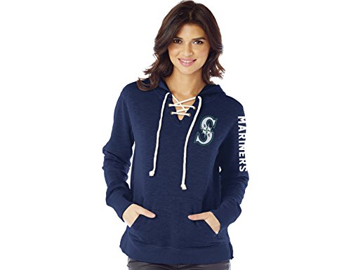 MLB SEATTLE MARINERS WOMEN'S SLUB FLEECE LACE HOODIE, SMALL, NAVY
