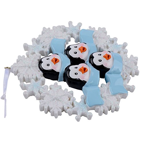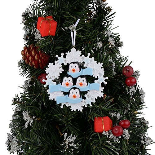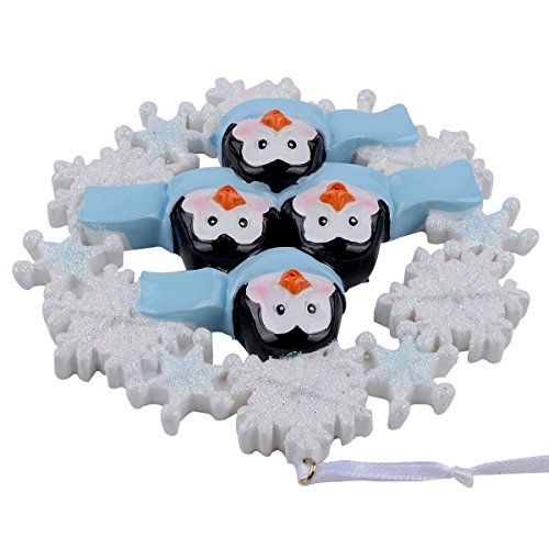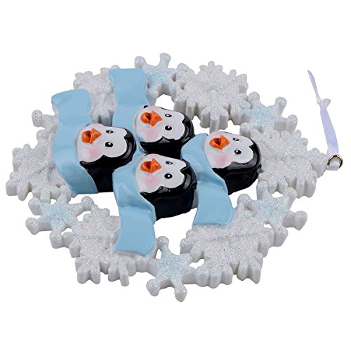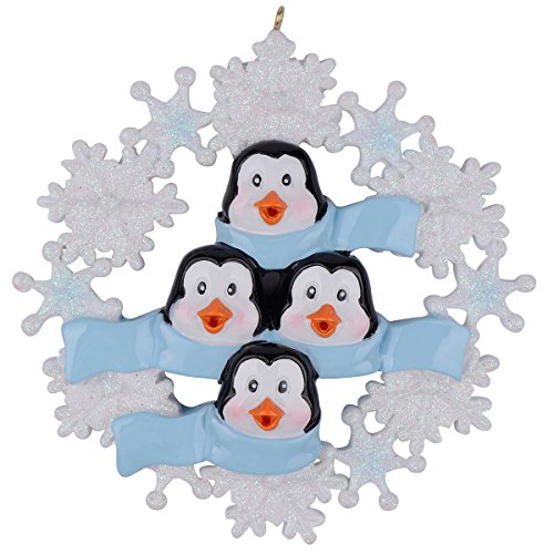 Personalized Penguin Family with Snowflake of 4 Ornament