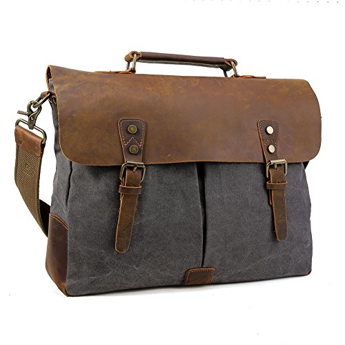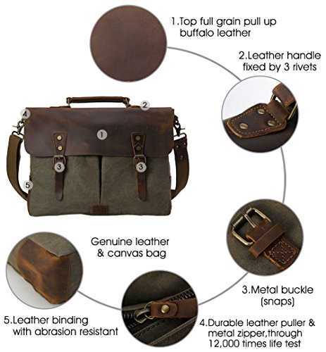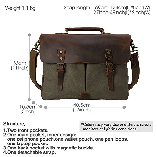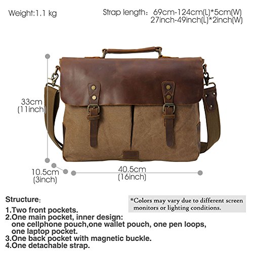 -. Title : TIDING Men Canvas Leather Cross body Bag Hobo 15.6 Inches Messenger Laptop Bag