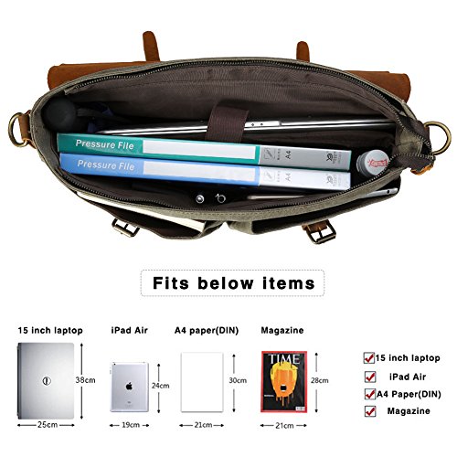 -. Feature : This leather messenger shoulder bag made of top full grain cowhide leather and red washable canvas fabric, bronze hardware. / This canvas bag Capacity is 1 x main compartment, 15.6-inch laptops, A4 files, fits iPad Mini, fits iPad Air 2 x inner slip pockets for cellphones, chargers, ear sets, glasses, etc. 1 x inner zipper pocket for significant articles 1 x padded laptop sleeve, damping vibration for the laptop in daily use. / The shoulder strap can be easily adjusted or removed, the soft leather handle makes it comfortable to carry. / The canvas leather messenger bag is idea to use as briefcase, laptop messenger bag, laptop bag, college bag, school bag, canvas messenger bag, shoulder bag. / 1 year warranty, when you need warranty, please contact us.
