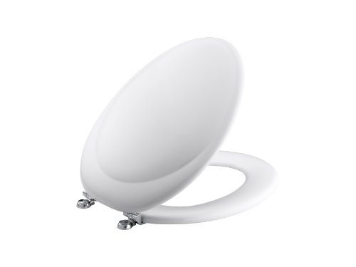 KOHLER K-4615-CP-0 Revival Elongated Toilet Seat with Polished Chrome Hinges, White