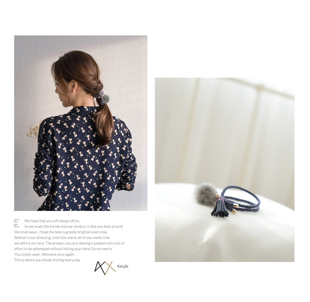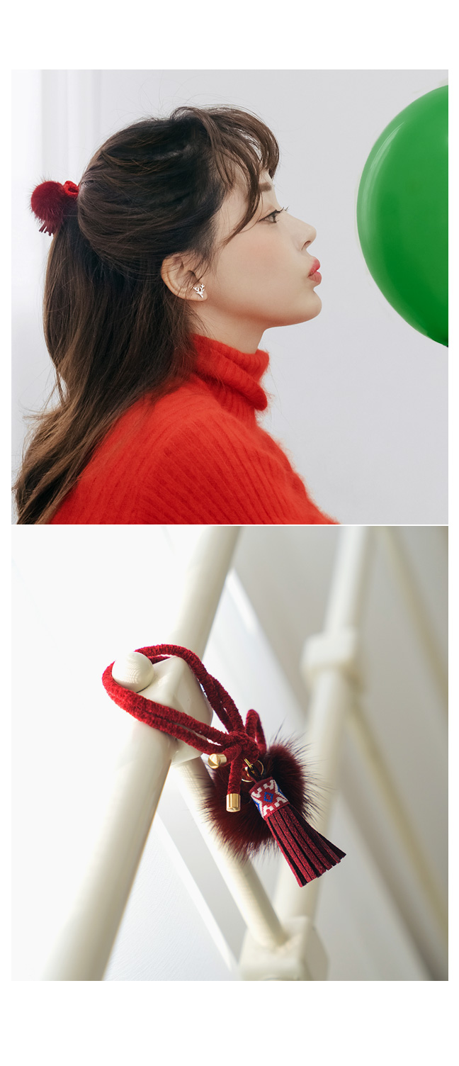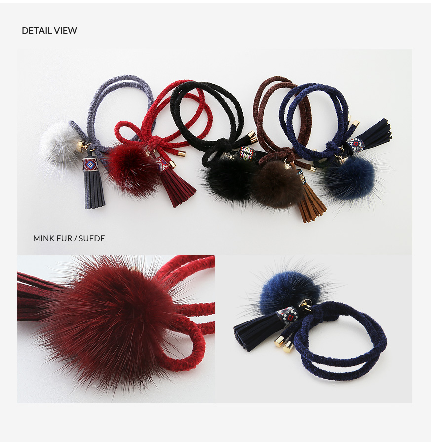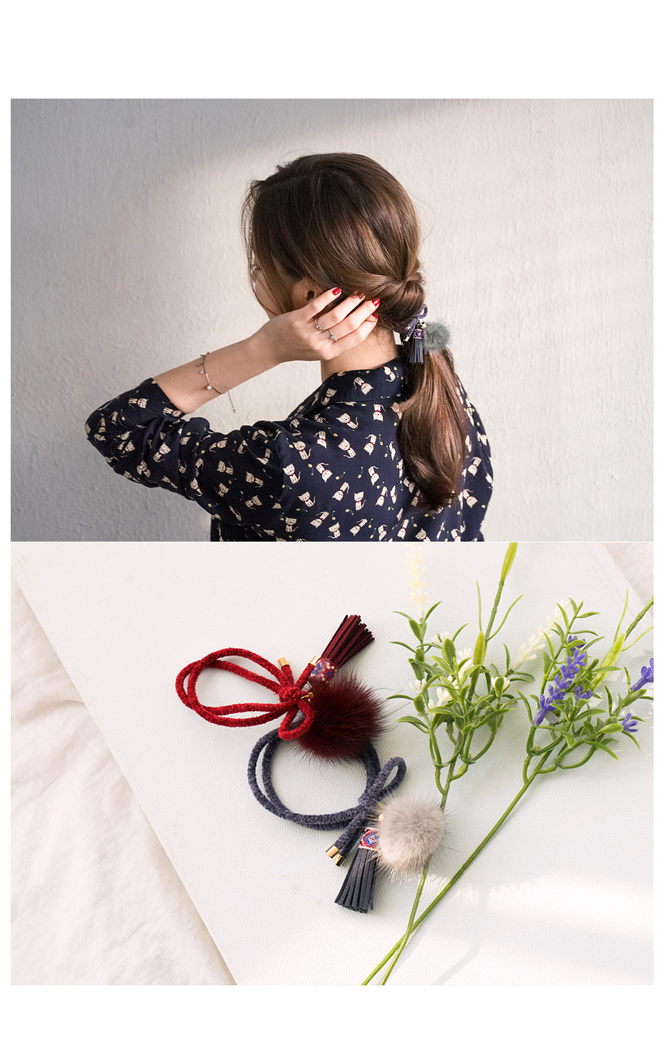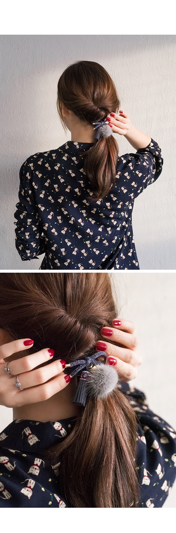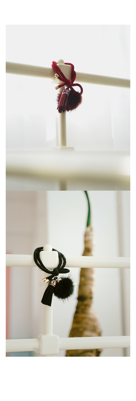 스웨이드 재질의 태슬과 보송보송 동그란 밍크의 믹스매치 포니테일