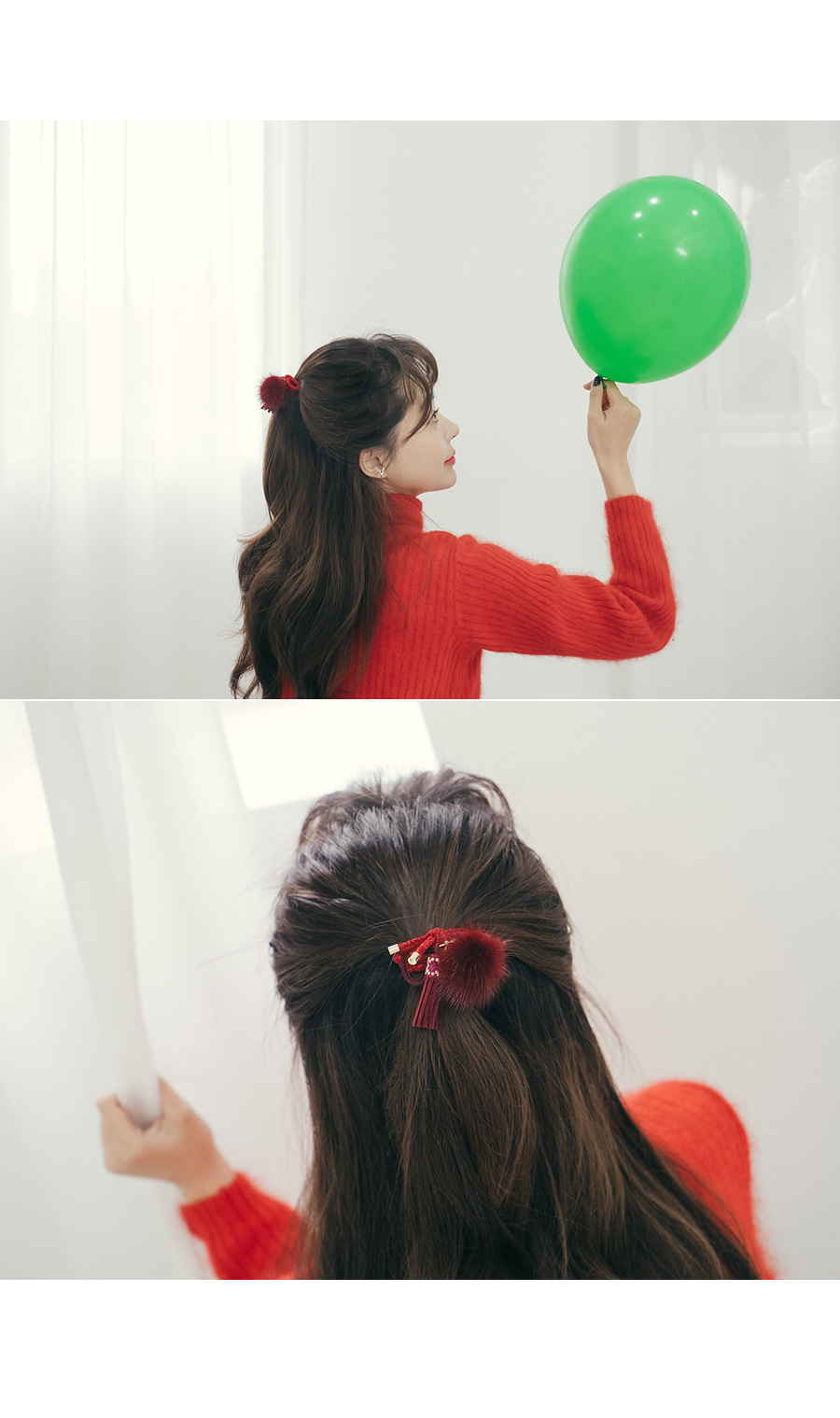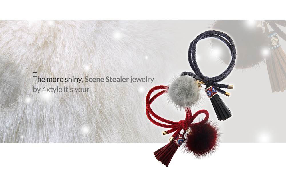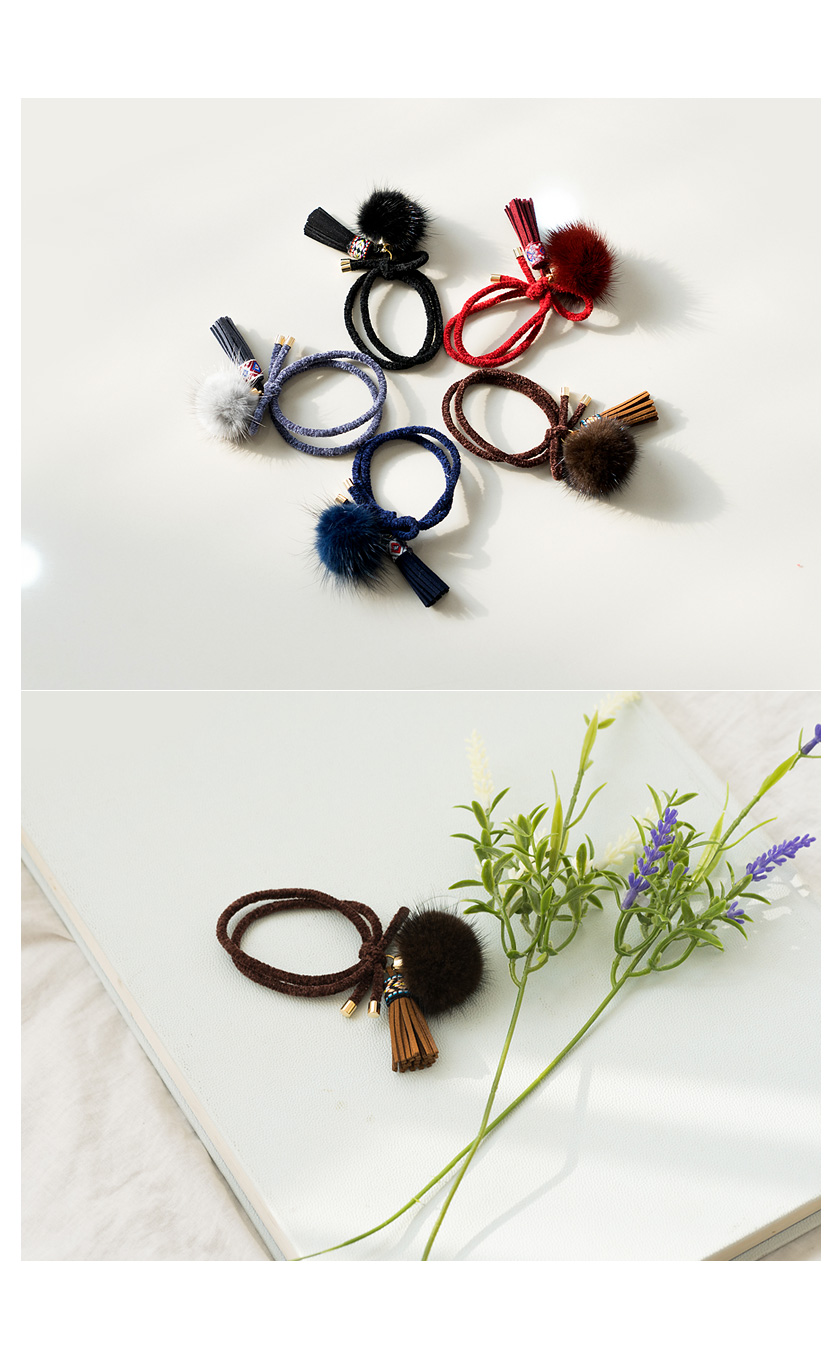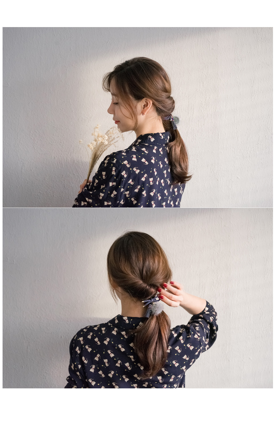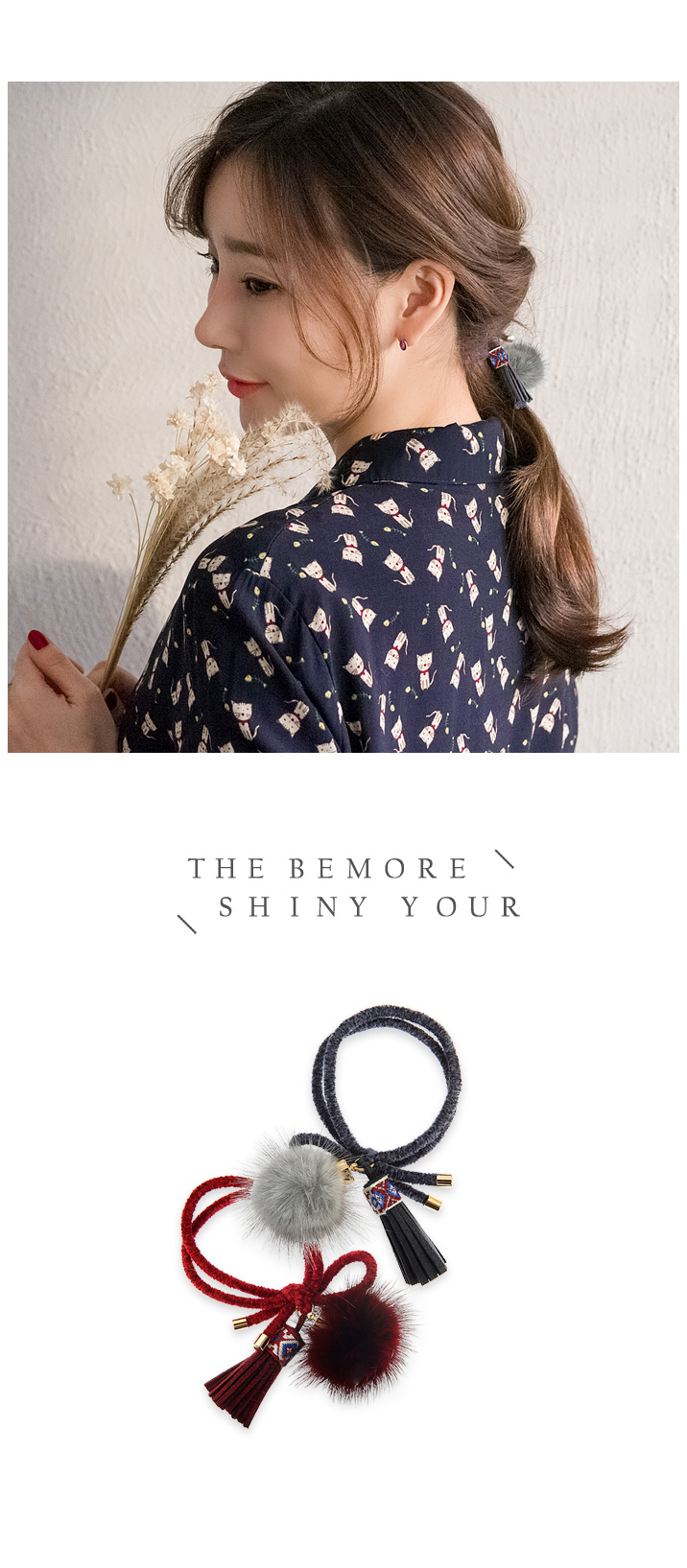 스웨이드 재질의 태슬과 보송보송 동그란 밍크의 믹스매치 포니테일