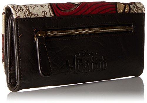 Premium flap wallet from Disney's The Little Mermaid with an embroidered & textured vintage tattoo style Ariel design. Embossed logo and zipper pocket on back. Interior includes pockets, card slots and clear ID window. 8 1/2" x 4" Simulated leather Imported
