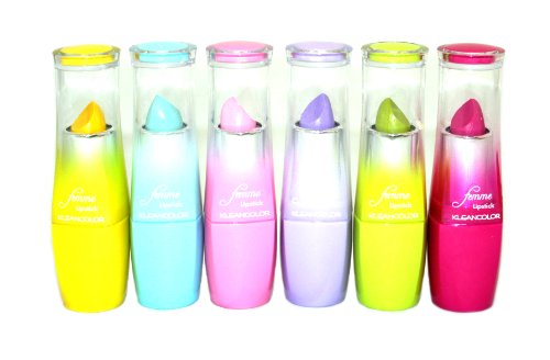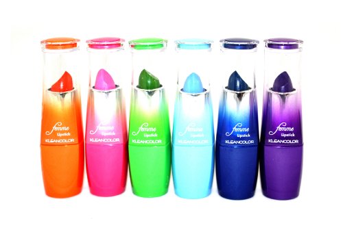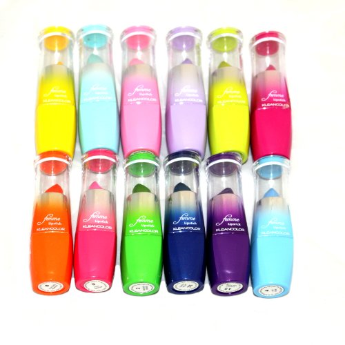12 in 1 Pack Kleancolor Lipstick " Femme Colorful Lipstick " (LS1275) Celebrating femininity of every true woman, KleanColor features Femme Lipstick with hydra glide and creamy formula in ultimate long-wearing comfort and colorful pigments. Its smooth texture and romantic shades complement the lips with fresh and sheen finish. 12 Lipsticks in 1 Pack as shown Pictures. Net Wt. 3.5g e 0.12 oz per each unit.