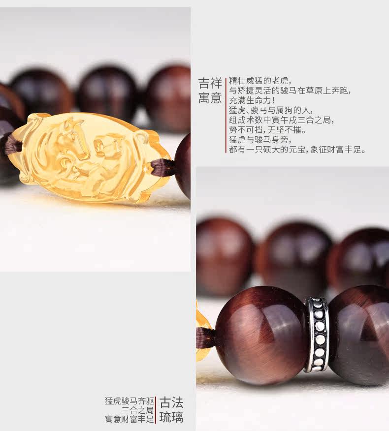 吉祥物新款属狗 虎马三合男女情侣款琉璃手链