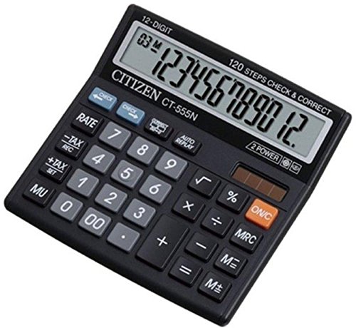 Have fun while you learn mathematics with this CT-555 N Basic calculator which is exclusively designed with special features to meet the basic needs of young students and professionals. Tax Calculation Function Now, calculating tax values is made easy with the help of this Citizen calculator which is designed with a special tax calculation function. Automatic Power Off When there is no key entry for a longer time, the calculator gets switched off automatically to save the battery life. Check And Correct The check and correct function enables you to recall and edit the wrongly entered data. Square Root The Square Root function helps you to calculate the root value of a particular number that you enter. Power Source: Battery And Solar This calculator is dual powered with a high power solar and back-up battery to ensure continuous and long-lasting usage.Feature