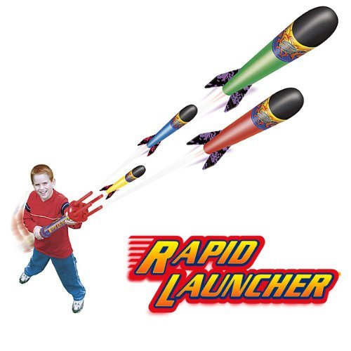 -. Binding : Toy -. Brand : Geospace -. Color : Multi -. EAN : 0728369129070 -. Feature : Launching pump is bigger and more powerful than in previous models, / Rockets soar up to 100' in the air / With a little practice, astronauts can launch up to four rockets in quick succession for intergalactic skirmishes and attacks / Rockets have safe, soft foam tips -. IsAdultProduct : 0 -. IsAutographed : 0 -. IsMemorabilia : 0 -. Label : Geospace -. Manufacturer : Geospace -. Model : 12907 -. MPN : 12907 -. PackageQuantity : 1 -. PartNumber : 12907 -. ProductGroup : Toy -. ProductTypeName : TOYS_AND_GAMES -. Publisher : Geospace -. ReleaseDate : 2009-04-01 -. SKU : CA-12907 -. Studio : Geospace -. Title : Geospace Rapid Launcher Rotating Launcher/4 Rockets -. UPC : 728369129070
