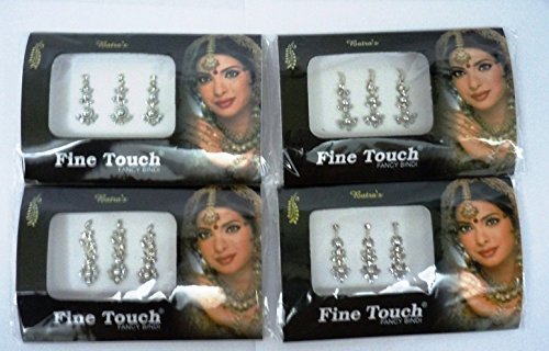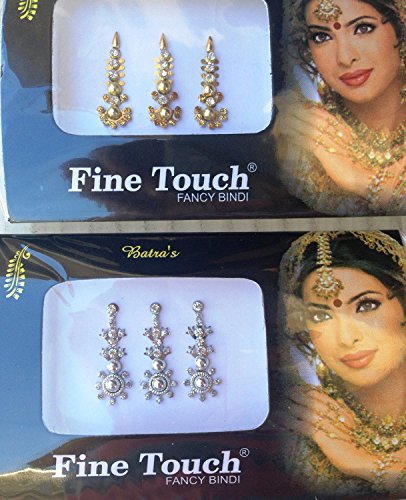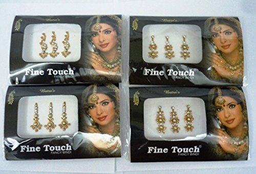 -. Feature : 4 PACK OF NEW BEAUTIFUL GOLD SILVER MULTI ASSORTED SIZED RHINESTONE STUDDED BINDI'S. / you will receive 1 Gold,1 Silver,1 Multi color big 3 Bindi pk & 1 Pk of long regular Bindi / ALL THE BINDIS ARE READY TO WEAR AND REUSABLE. USE ABOUT 4-5 TIMES / GREAT FOR STICKING ON FACE, NAILS, BODY, BELLY, CELLPHONES, CARDS. DOLLS, BAGS, PAINTINGS ETC. / Please see our other listings for more designs.