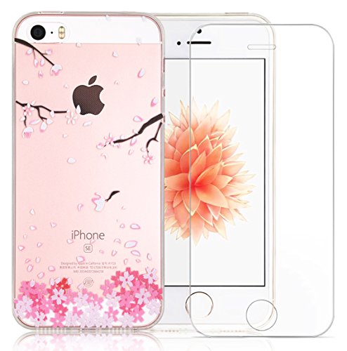 Iphone 5 Case, Iphone SE / 5s Case, A-Focus Marine Animal Cartoon Sweetie Cute Creative Dolphin Soft Thin TPU Case + Tempered Glass Screen Protector for Iphone 5s / SE / 5 ( Dolphin )
