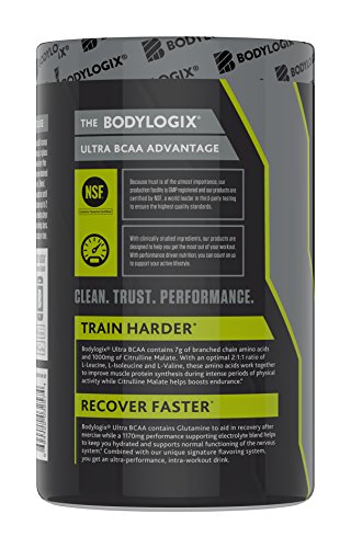 Train harder and recover faster with Bodylogix Ultra BCAA. Delivering 7000mg of non-GMO, pure BCAAs with an optimal 2:1:1 ratio of L-Leucine, L-Isoleucine and L-Valine, Bodylogix Ultra BCAA helps to build and repair lean muscle mass. Get the most out of your workout with a 1170 mg performance electrolyte blend to help in hydration while supporting normal functioning of the nervous system. Combined with our signature flavoring system, you get an ultra-performance, intra-workout drink that's ultra-tasty too.Feature