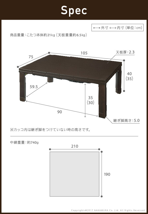 ●天板サイズ:幅105x奥行75cm・厚み23mm・約6.5kg