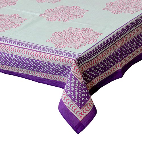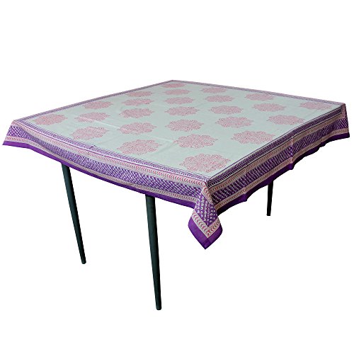 Pink Purple Floral Square Table Cloth in Cotton Fabric Indian Home Décor 60 X 60 Inches