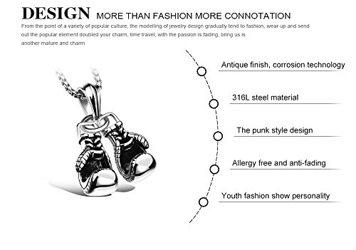 COCO Park Fashion Men Kpop Jewelry Stainless Steel Sport Boxing Gloves Pendant Necklace 19 5/8", Silver