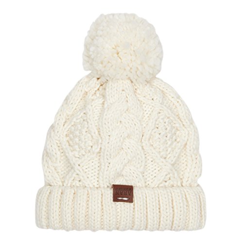 Product DescriptionAran Workshop Warm Winter Cream White Diamond Cable Bobble Beanie Hat0