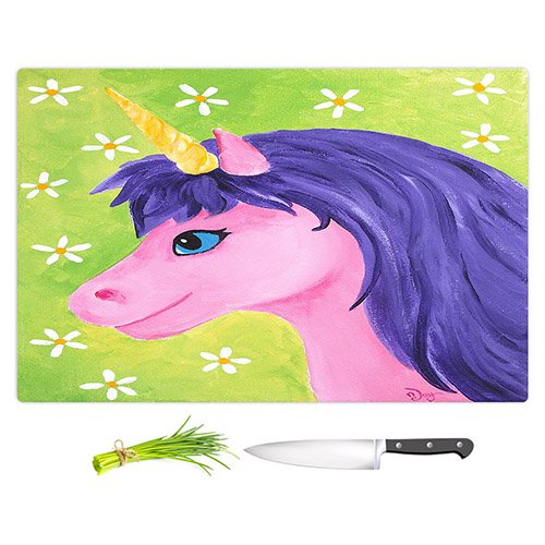 DiaNoche Designs CB-nJoyArtPinkUnicorn2 Njoy Art-Pink Unicorn Cutting Boards from, Large 15" x 11"
