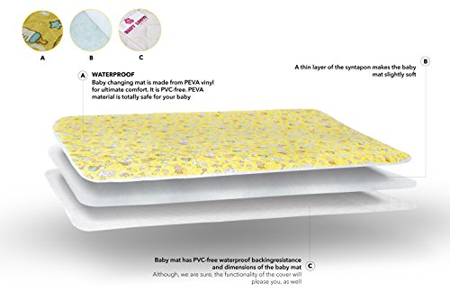 Baby Changing Mat - Portable Changing pad - Waterproof Reusable Large Size Mat - Multi-function Storage Bag - Bright Color - Safe for Children - Guarantee