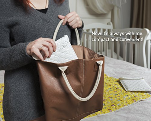 LARGE SIZE of baby mat for swaddling is an obvious advantage. Size 31.5'' x 25.6'' is one of the largest among similar products. The portable changing mat takes little space in the folded state and it fits easily into a handbag