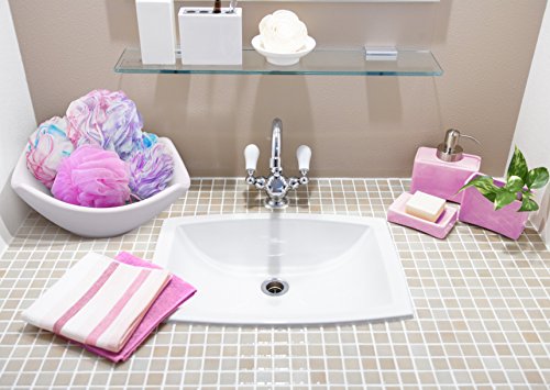 -. Feature : Great for exfoliating! Soft to the touch, but rough enough to give you smooth, silky skin! / Quality material that looks beautiful, holds up and creates great lather. / Large size (50 g), so you can easily hold and scrub. / Attractive, longer, durable handle to place hand through for scrubbing and hang to dry in bath or shower. / Six (6) beautiful colors (1 of each shown), something for everyone in the household.