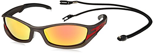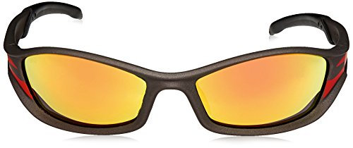 MCR Safety TB13R Tribal Hybrid Temple Design Safety Glasses with Graphite/Red Tattoo Frame and Fire Mirror Anti-Fog Lens