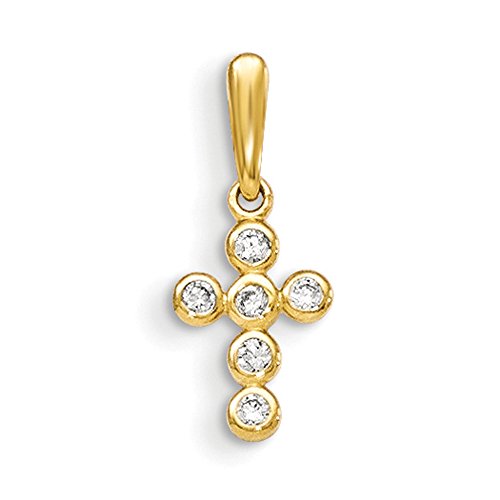 -. Binding : Jewelry -. Brand : The Black Bow -. Color : Yellow -. Department : girls -. Feature : Polished 14k yellow gold design / Bezel set with 6 cubic zirconia stones / Approximate size 8 x 17mm with the bail / Weight is Approximately 0.27 grams / Includes our custom gift box -. Label : The Black Bow -. Manufacturer : The Black Bow -. MPN : P12030 -. NumberOfItems : 1 -. PackageQuantity : 1 -. PartNumber : P12030 -. ProductGroup : Jewelry -. ProductTypeName : FASHIONNECKLACEBRACELETANKLET -. Publisher : The Black Bow -. Studio : The Black Bow -. Title : 10mm Jeweled Cubic Zirconia Cross Pendant in 14K Yellow Gold