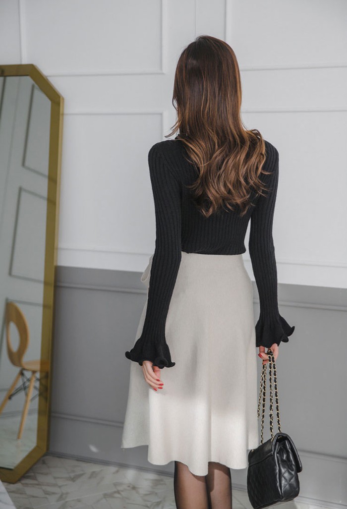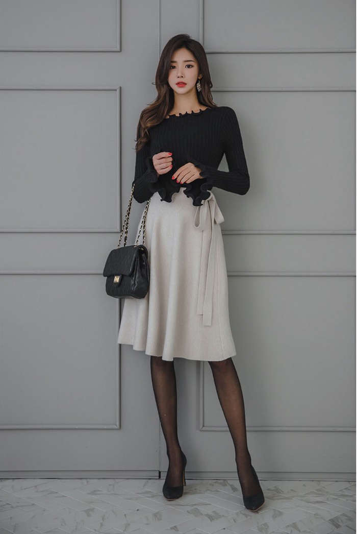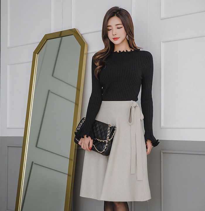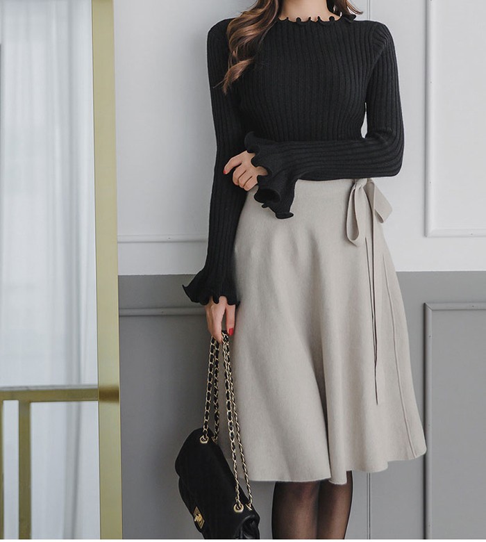商品名:スカート 膝丈 無地 フレアスカート