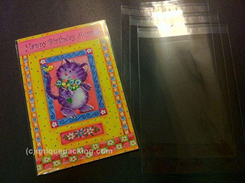 100 Pcs 5 7/16 X 7 1/4 Clear A7+ Card Resealable Cello / Cellophane Bags Good for 5x7 Card Item (Fit A7, 5x7 Card w/ Envelope) (by UNIQUEPACKING)