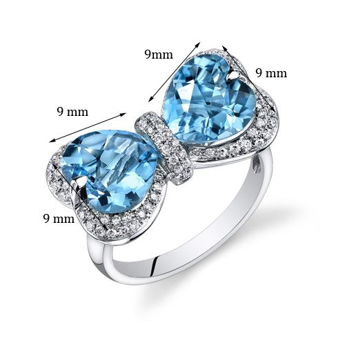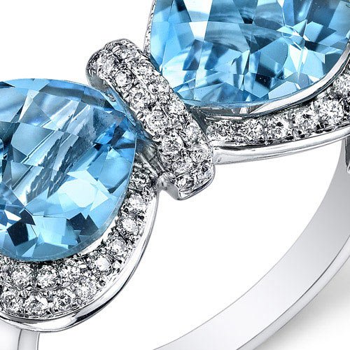 -. Title : Peora 14K White Gold Heart Swiss Blue Topaz Diamond Ring (5.95 cttw)