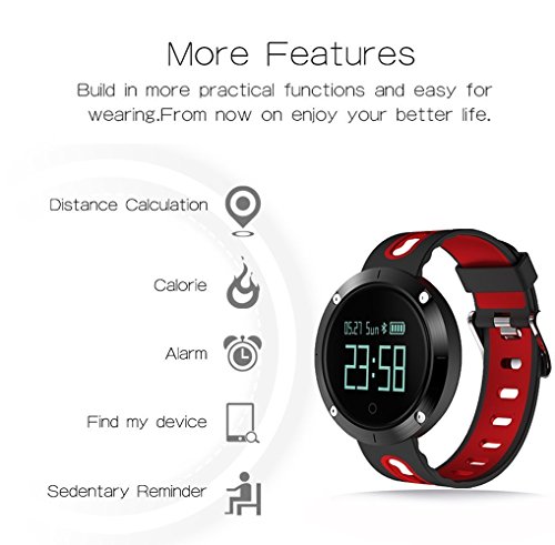 ✔ [Active Fitness Tracker] smart pedometer, calories record, sleep monitor, sync date and time, notifications, remote camera control, anti-lost alert, find Phone, sedentary alert, etc.