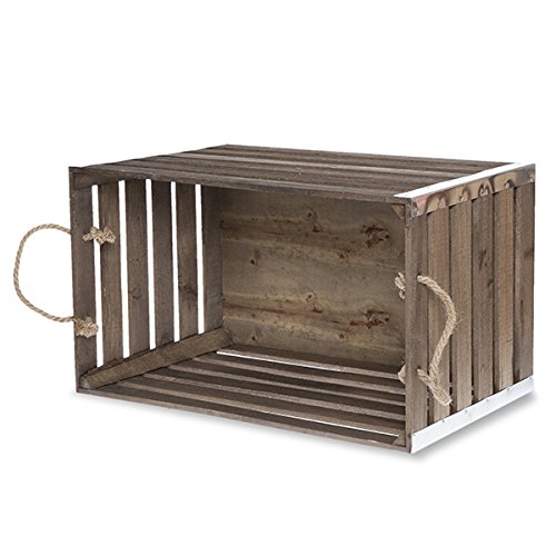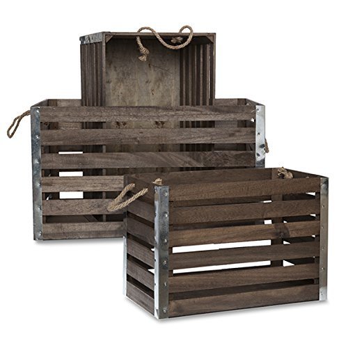 The Lucky Clover Trading Wood Crate with Rope Handles Metal Corners, Antique Brown, Set of 3