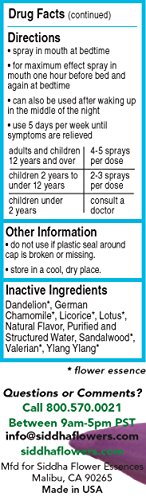 -. Binding : Health and Beauty -. Brand : Siddha -. EAN : 6273746303900 -. Feature : Flower Essences;Stress;Stress Relief;Emotional Wellness;Herbal Remedies;sleeplessness;wake up in middle of night / Natural, safe and non-habit forming / Hpus active ingredients: ferrum phosphoricum 8x, kali carbonicum 6c, kali phosphoricum 3x, natrum muriaticum 3x, magnesia phosphorica 8x / No contraindications; May be effectively used with drugs and other supplements / Alcohol free; Prepared in purified and structured water with natural preservatives. -. IsAdultProduct : 0 -. Label : Sidda -. LegalDisclaimer : Statements made, or products sold through this web site, have not been evaluated by the Food and Drug Administration. They are not intended to diagnose, treat, cure, or prevent any diseases. Consult a qualified health care practitioner before taking any substance for medicinal purposes.California Proposition 65 WARNING: Some products on this store contains progesterone, a chemical known to the State of California to cause cancer. Consult with your physician before using this product. -. Manufacturer : Sidda -. Model : SID-00201 -. MPN : 897186002016 -. NumberOfItems : 1 -. PackageQuantity : 1 -. PartNumber : 897186002016 -. ProductGroup : Health and Beauty -. ProductTypeName : HEALTH_PERSONAL_CARE -. PublicationDate : 2013-11-16 -. Publisher : Sidda -. ReleaseDate : 2013-11-13 -. Size : 1 fl oz -. Studio : Sidda -. Title : Siddha Sleep Dietary Supplement 1 fl oz -. UPC : 897186002016