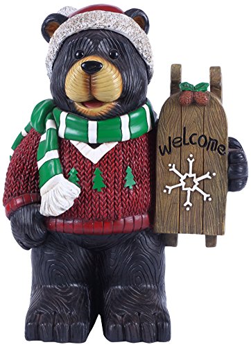 Bear with Scarf Holding Welcome Sign Statue