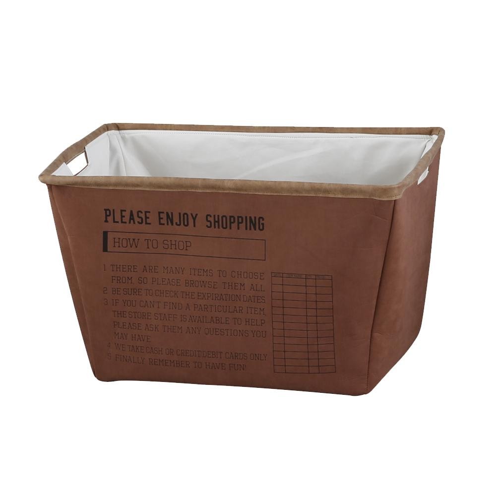 | フェイクスウェード風生地で作られた触りごこちがソフトなボックスです。ショッピングシートをイメージしたプリントには買い物のメソッド(方法)が書かれていてユニークなデザインとなっています。 |