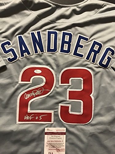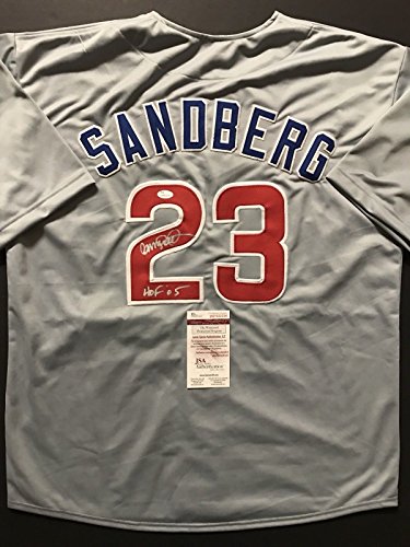 Autographed/Signed Ryne Sandberg "HOF 05" Chicago Cubs Grey Baseball Jersey JSA COA