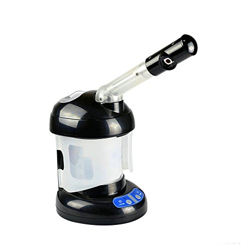 -. Feature : Multifunctional 3-in-1 steamer powerful atomizer generates ultra-fine mist that can be quickly and easily absorbed by hair or skin, which can be used for facial steaming helping facial mask processing and hair steaming. Standard salon hair care hot mist steam effectively promotes hair treatment cream absorption. Besides hair and skin care, the large capacity steamer can be used for interior humidifying and has an extra chamber to warm towels for ultimate refreshment in a powerful efficient way. / Moisturize and hydrate your hair, prevents breakage and split ends. Improve absorption of conditioners and other treatments. Hair steaming with hair treatment cream and argan oil hair mask or deep conditioner can deeply hydrate and repair dry and damaged hair.Professional salon treatment that instantly transforms the texture of your hair leaving it soft, silky, and easier to manage. Deeply conditions, detangles, hydrates, and revives dull and dry hair making it shine and elastic. / The ultra-fine mist opens and unclogs facial pores to remove dirt, oil and grime from skin. The daily care nano steamer provides pure nano-ionic steam. Combined a heating element and ultra sonic vaporizer to produce steam with negatively charged ionic particles, the nano steam contain ionic water particles which are up to 10 x more effective in penetrating skin. Built-in ozone generator; controlled release of negatively charged oxygen which reduces itchiness and prevents dandruff. / A larger 320ml water tank allows for 45 minutes of working time with a silent operation, long running time. One press button operation, easy and convenient for your beauty routine. High-tech ozone function is provided to sterilize. Smart facial steamer shuts off automatically if no water in water tank, preventing any injury. Designed into desk type, it can free your hands while using the machine, quite convenient to use. The facial spray rod and hair care cap attachment is included / The warm steam is released after about 5 minutes.For stronger steam spray, press the ion output button. Powerful and ultra-fine steam will be released. Aromatherapy diffusing function is provided. Drop a few drops of essential oil on the cotton pad can get the relaxing facial steaming, great for muscle relief and massage.A full tank of water can be run for about 45 minutes. 10 min face steaming time for once,10-20 minutes steaming for hair-care. Easily remove blackheads and blemishes.