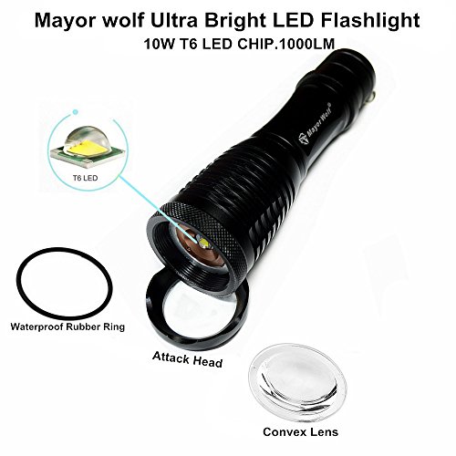 - SUPER BRIGHT AND MULTI-FUNCATIONAL MODES : 5 modes adjustable(High, Middle Low, Strobe, SOS), and it is focuses range of 300m to 500m