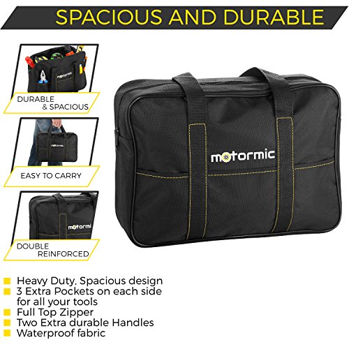 Motormic Heavy Duty Tool Bag with 6 pockets for extra storage – Contractor or electrician small canvas tool bag with zipper for multipurpose activities