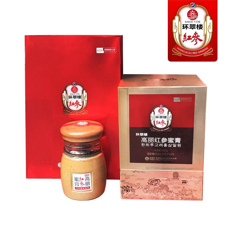 Korean Red Ginseng Honey Jar It is made to fit a modern's taste as health food. It is good for helping fatigued people to recover from the rigors of fast, modern everyday life. - Food types : 70% solid - Quantity : 1Jar - Net Weight : 480g -Directions for use: 1-2times/per day. 1 day< 50g. Eat by dissolving in warm water.