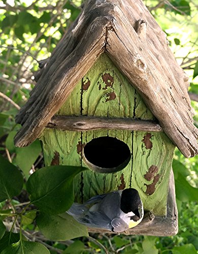 Harmony Fountains The Little Green House 9" Cottage Birdhouse -Stylish Functional Bird House. HF-G11 by