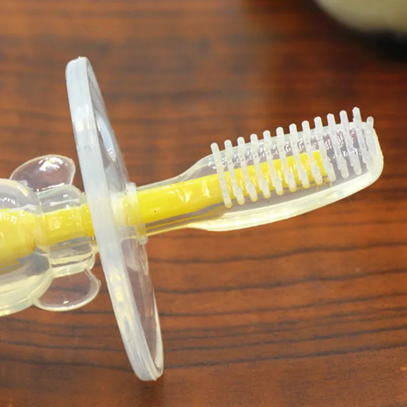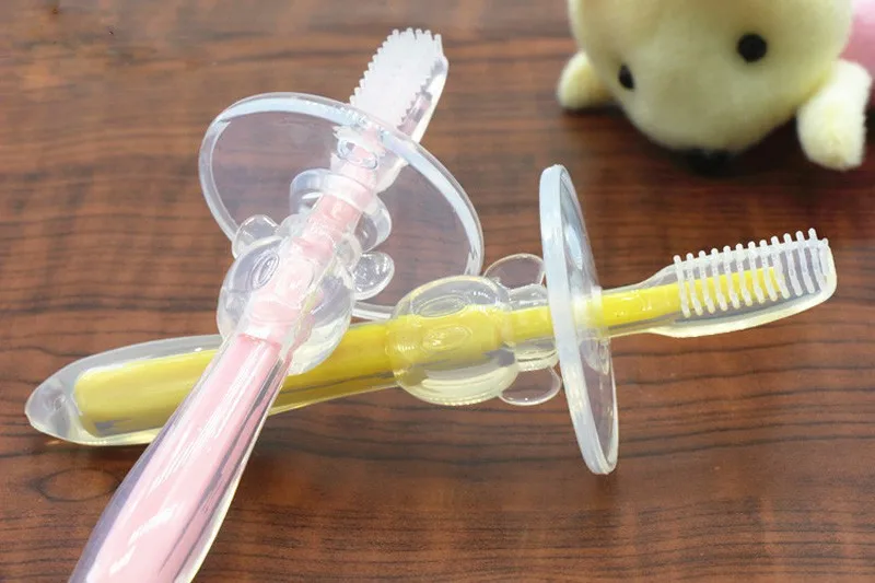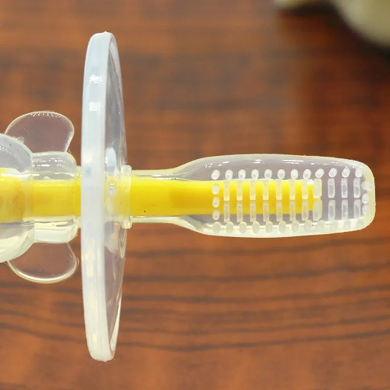 ?This toothbrush for babies is made of food-grade safe silicone, which is soft enough for using to cleaning babies' teeth.