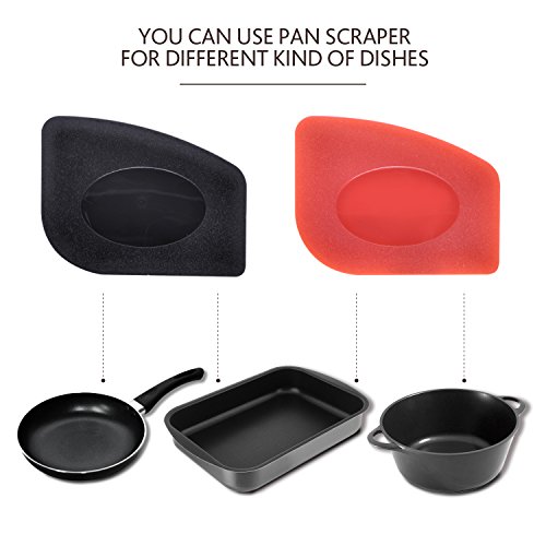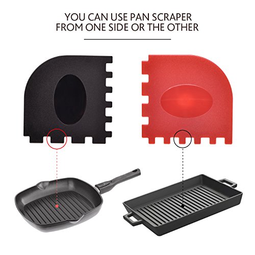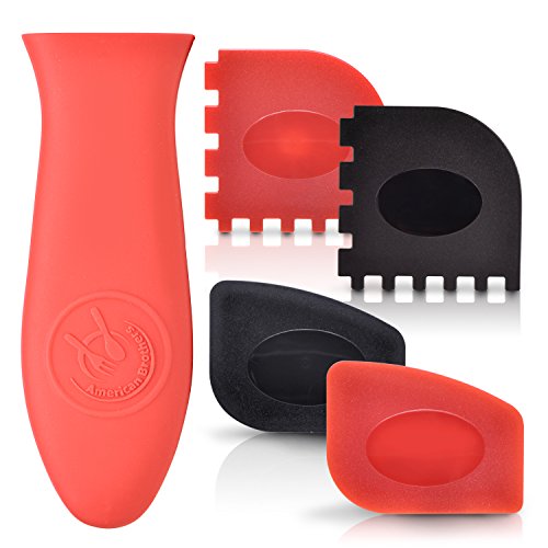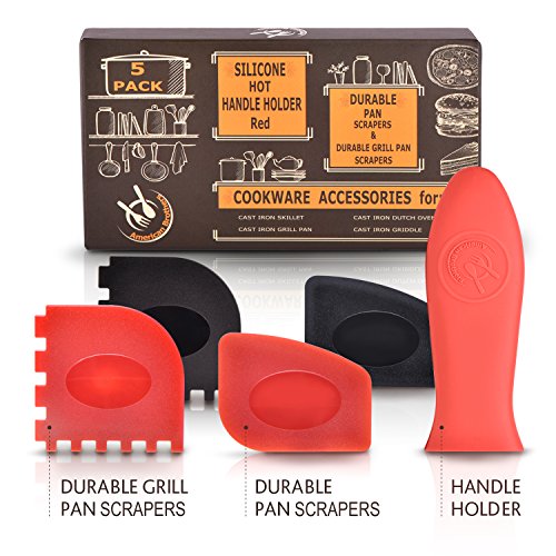 Durable Grill Pan Scraper Plastic Set Tool and Silicone Hot Handle Holder for Cast Iron Skillets, Frying Pans & Griddles,5-Pack