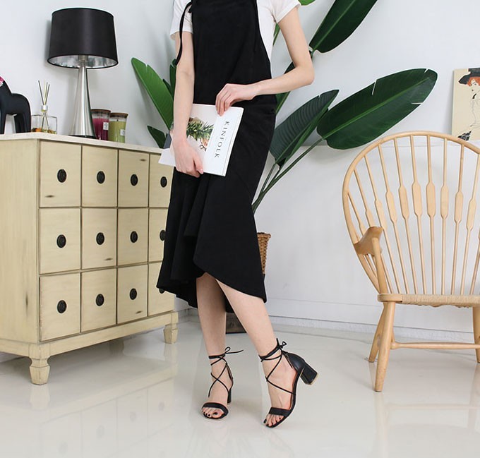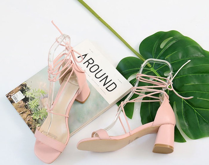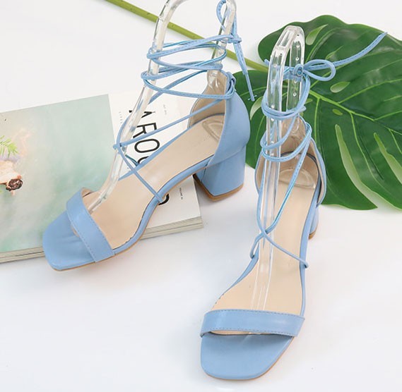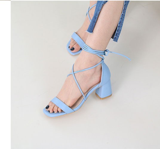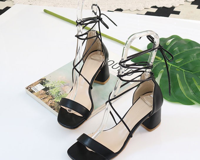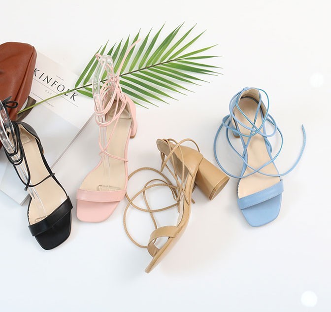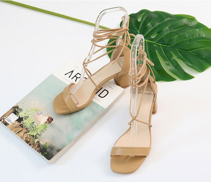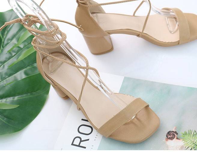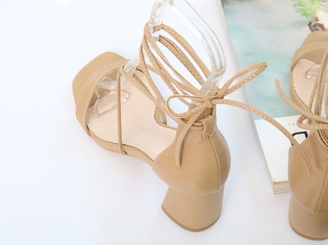 商品名:サンダル レディース レースアップ 太ヒール チャンキーヒール 2018 春 ファッション 靴 婦人靴