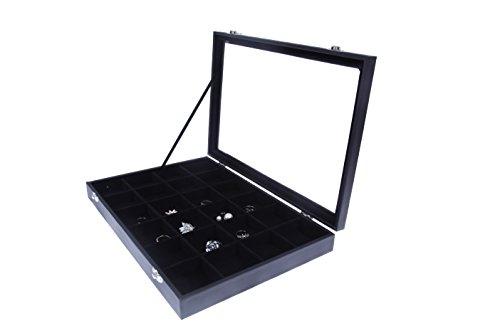 -. Feature : Featuring 24 spacious compartments and metal clasp closures, this tray is the ideal jewelry storage organizer for home or travel use. / Sleek and durable design. Organize your collection of rings, earrings, and cufflinks with this attractive and versatile jewelry display case. / Sturdy leatherette exterior and soft velvet interior protects your jewelry from scratches and abrasions. / Clear window helps you find your pieces instantly. / Perfect for taking to craft shows or storing your P.R.Ized pieces in a drawer. Measures 14 x 9.5 x 1 inches.