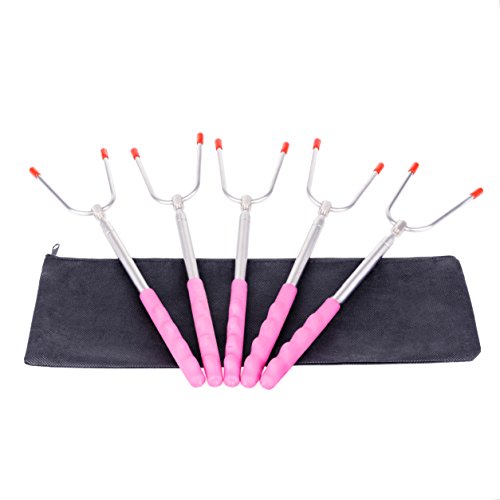 SEEYANG Upgrade Marshmallow Roasting Sticks Extending Extra Long 45 Inches, Collapsible Roasting Skewers,Hot Dog Stainless Steel Fork for BBQ,Fire Pit,Camping,Campfire,Bonfire Kids (Set of 5)