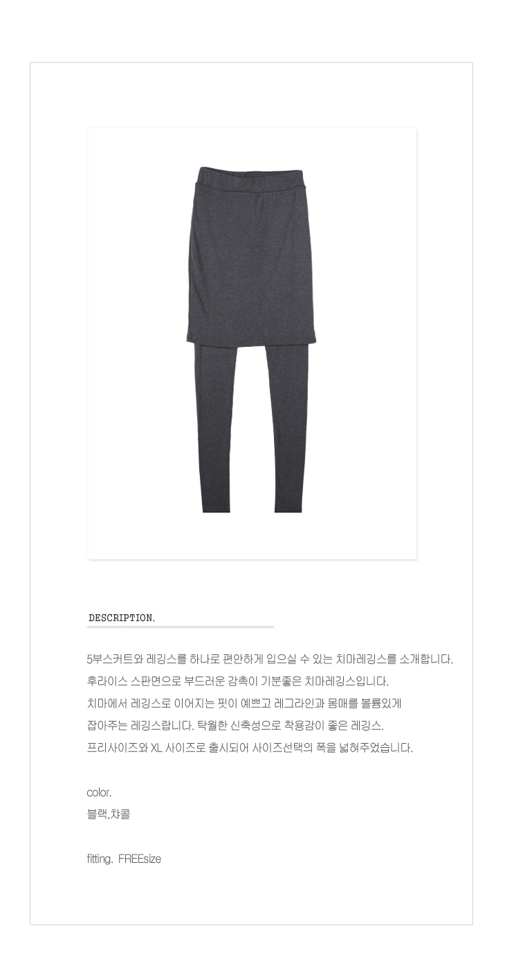 치마에서 레깅스로 이어지는 핏이 예쁘고 레그라인과 몸매를 볼륨있게 잡아주는 레깅스랍니다.