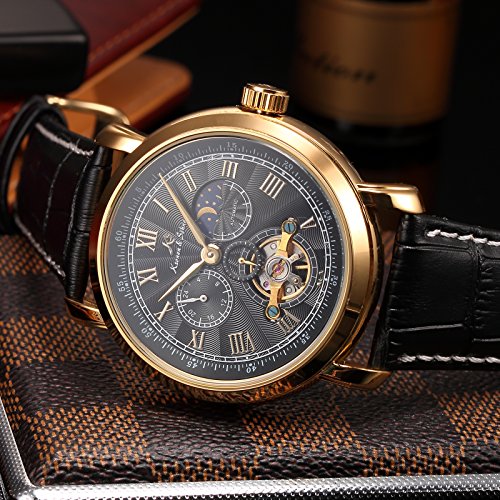 원본상품명: KS メンズ 自動的機械式 24時間表示 ブラック レザ? バンド 腕時計KS221