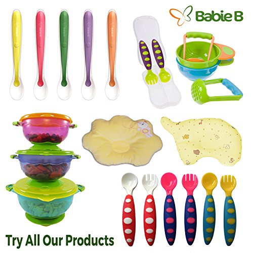 BabieB Mash and Serve Bowl Set to Make Homemade Baby Food w/toddler spoon fork utensil w/travel case included